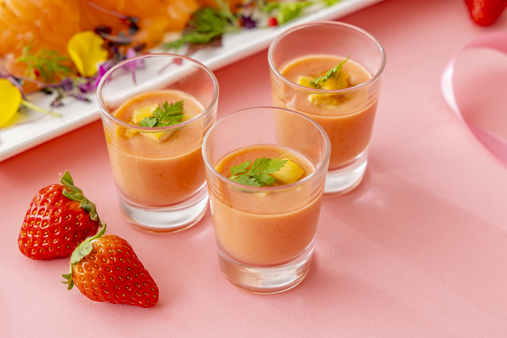 - いちごとトマトのガスパチョ はちみつ風味のモッツァレラ