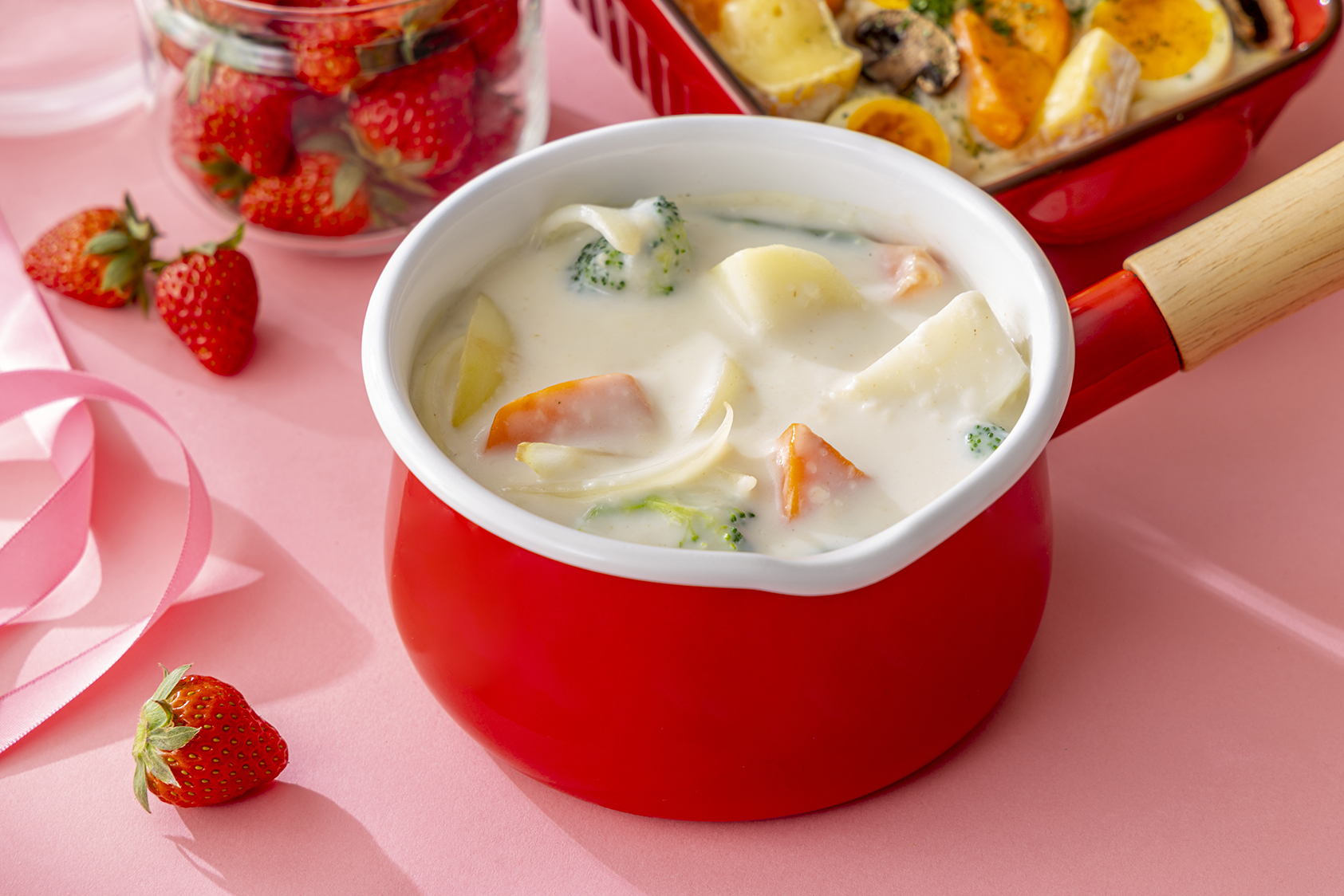本フェアのテーマは、冬の寒さを忘れさせる「いちごとミルク」の甘く温かなハーモニー。 北海道産ミルクのコクを生かした濃厚なクリーム煮込みや湯気が立ち上る温製メニュー、そして旬のいちごをふんだんに使用したデザートが勢揃いしました。ミルクの優しい「白」に、いちごの鮮やかな「紅」がアクセントを添える、目にも華やかな冬の食体験をお届けします。