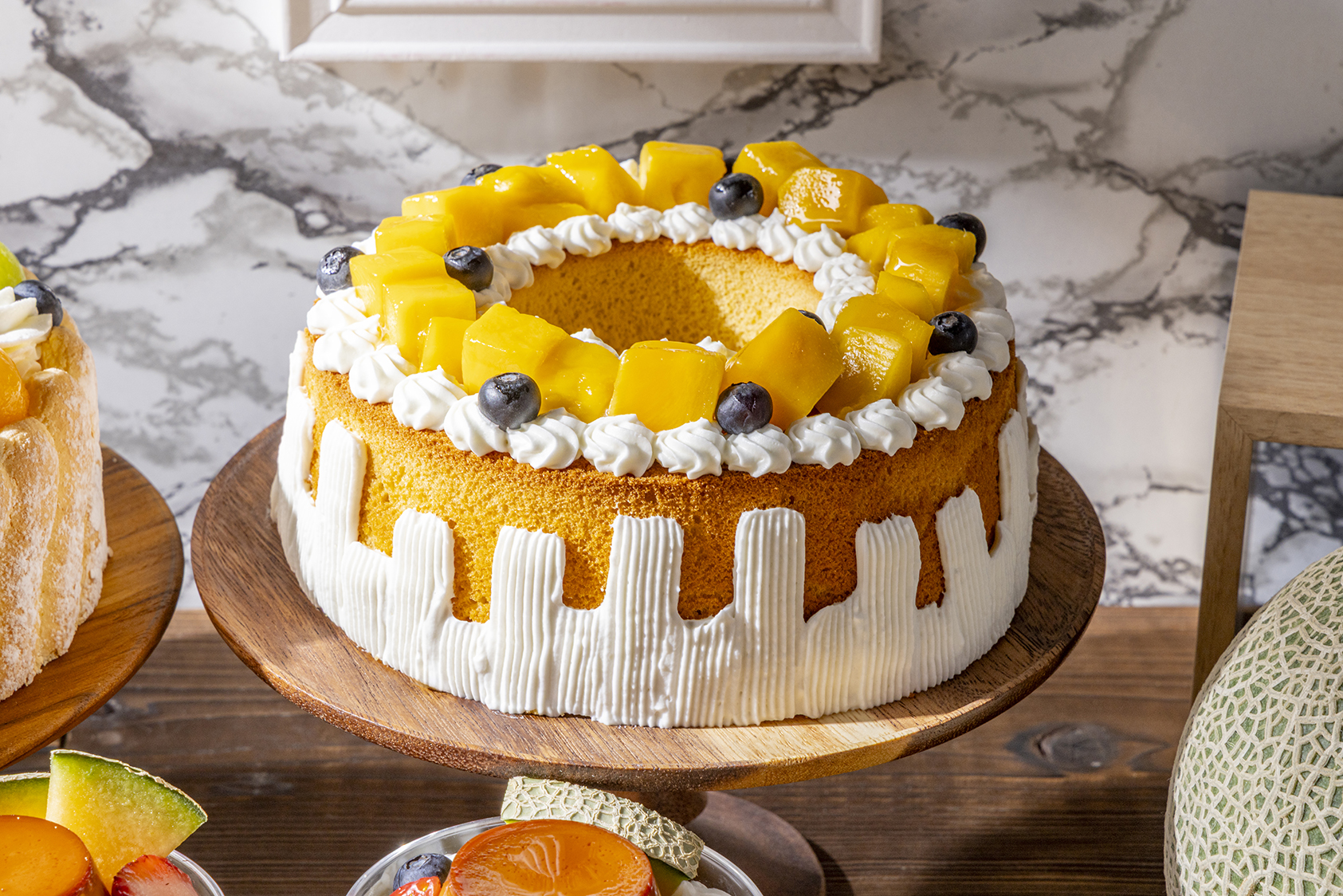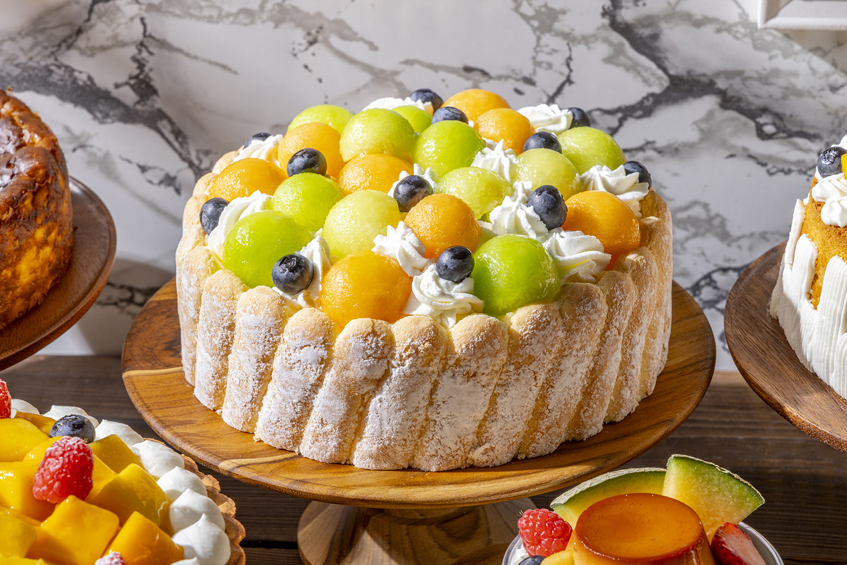みずみずしいメロンを贅沢にあしらった、爽やかな味わいのレアチーズケーキ。