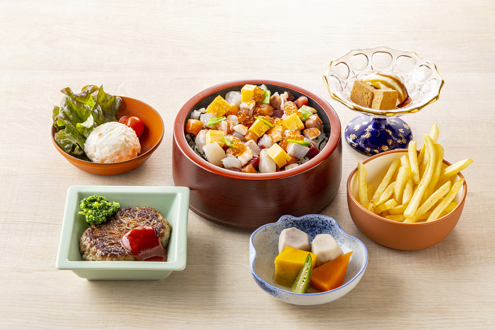 お子様はキッズシェフ体験でご自身で仕上げたちらし寿司を、大人の方にはホテル特製のスペシャルランチをご提供いたします。体験とあわせて、できたての美味しさをお楽しみください♪